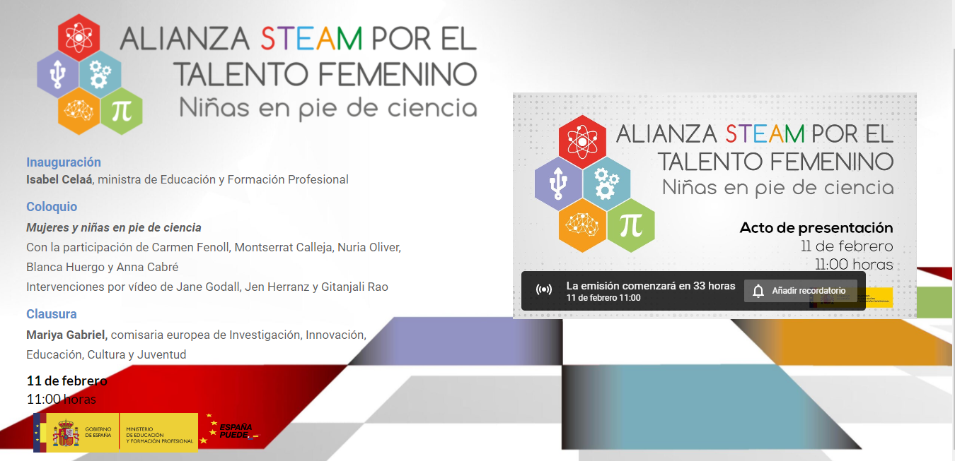 El Ministerio de Educación y Formación Profesional, presentará La alianza STEAM por el talento femenino, en el siguiente enlace tienes la información: